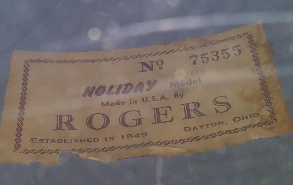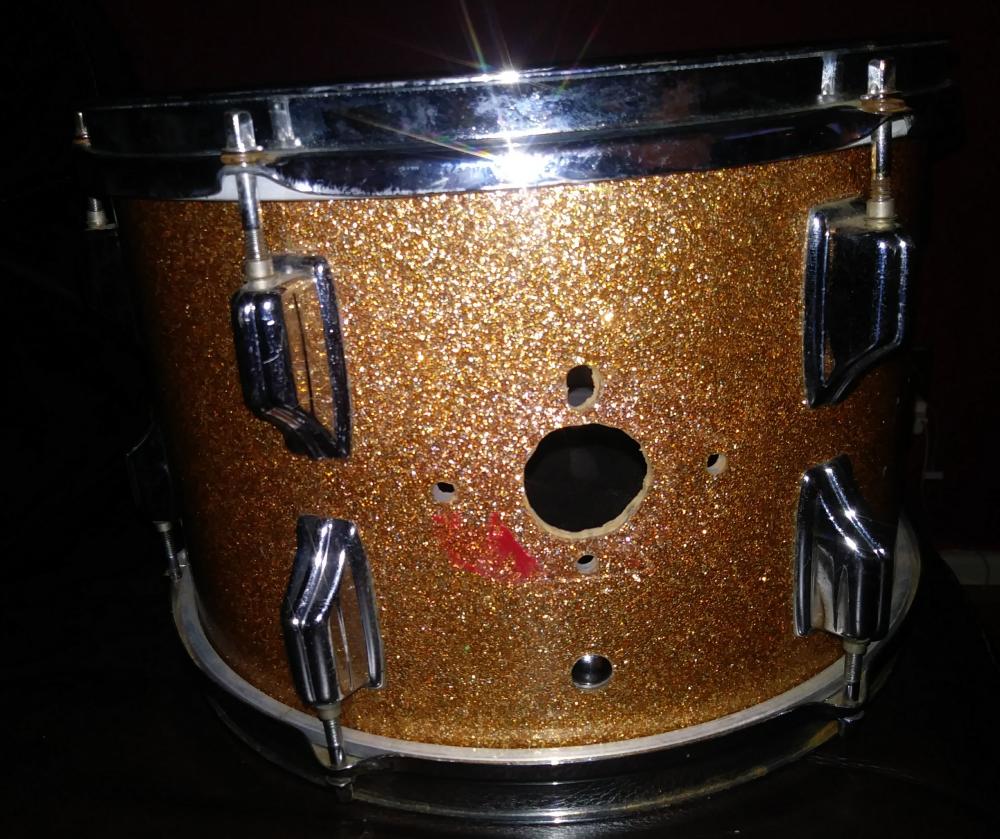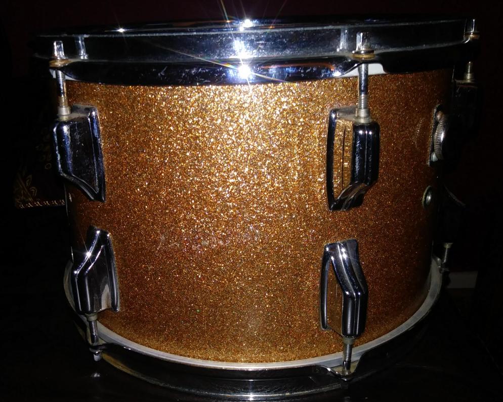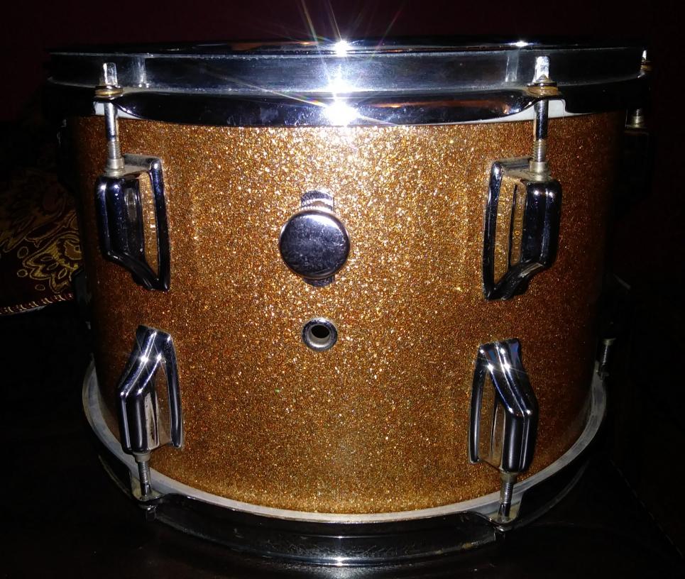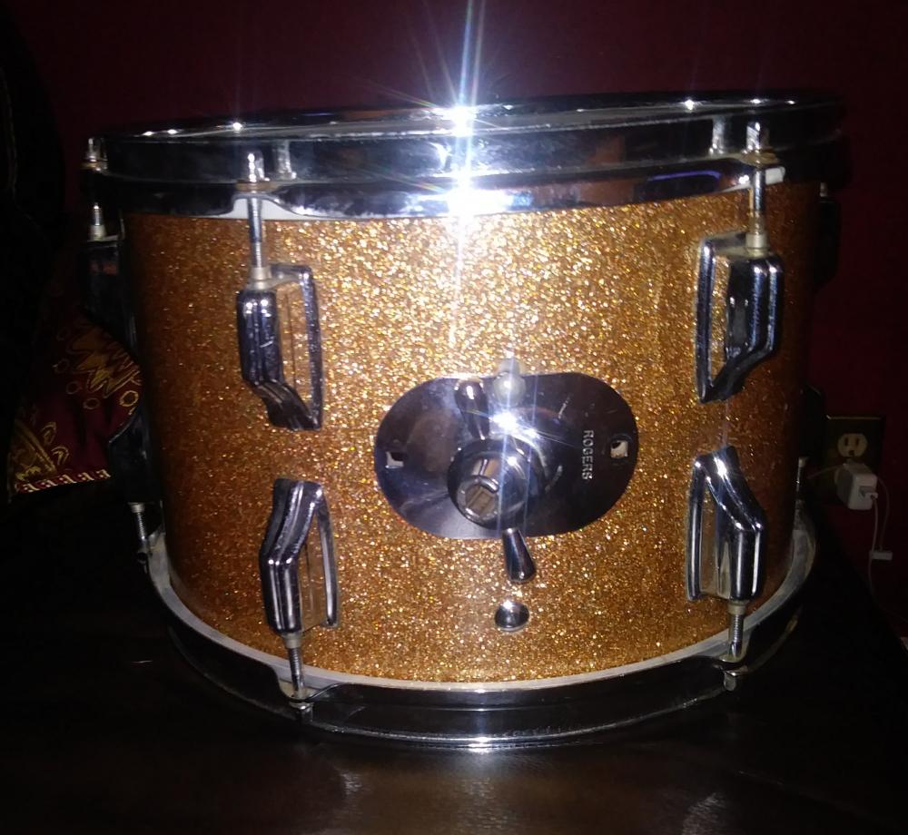 Here's a clean Rogers 8x12 tom in a champagne sparkle finish. It has a Dayton tag and flat grey interior.
