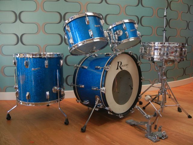 What still puzzles me is the fact that this type of 9/72 paper tags would indicate that the set is mid 70's but according to the brochures, Rogers didn't offer the Blue Sparkle Pearl after 1971,...?