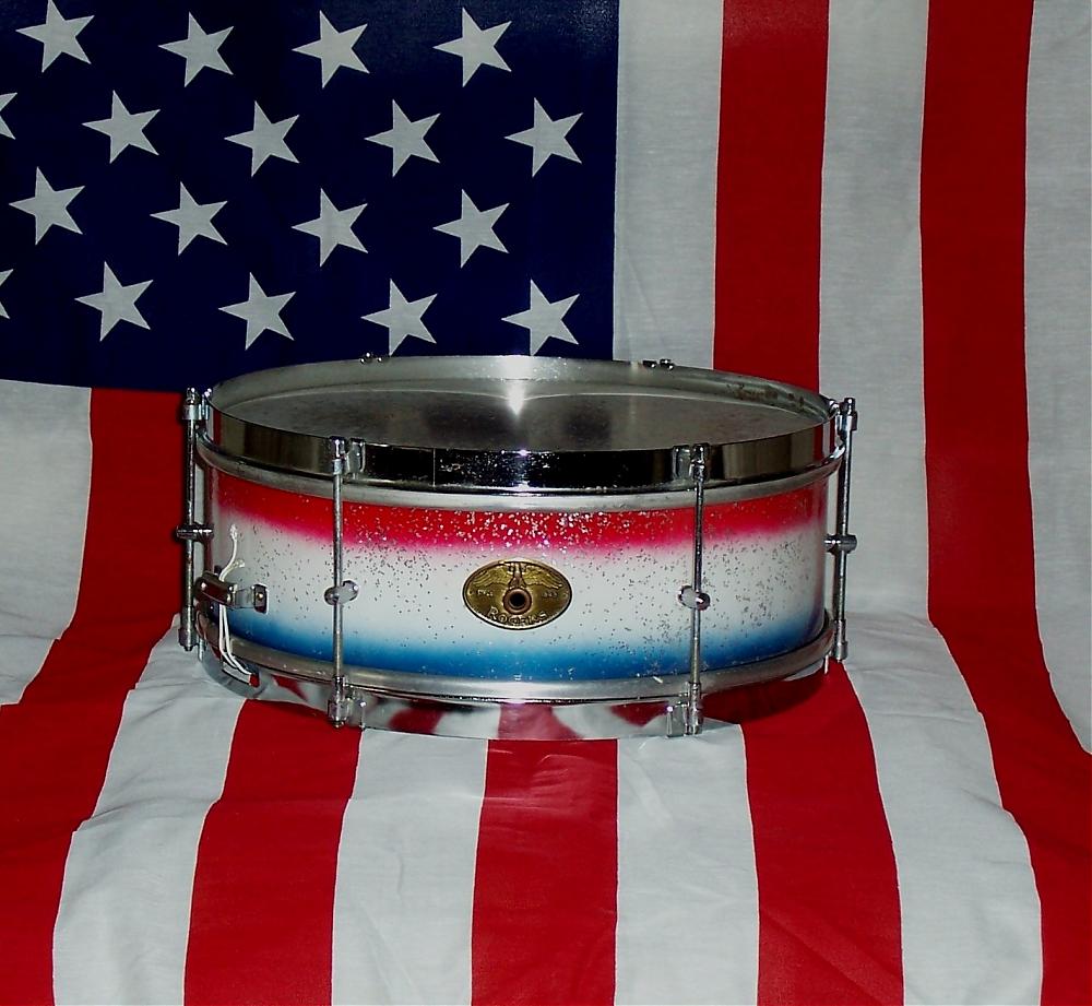 Thought I'd post this one since it's Fourth of July week. It's a late '50s Rogers Banner snare. I had it painted by a forum member several years ago to go with a patriotic kit I was putting together for use at some gigs at VFW. Eagles Club and American Legion Halls. The vets loved it. Wishing everyone a very Happy, SAFE 4th of July!