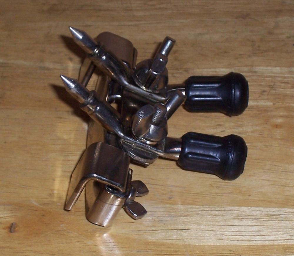 I'm trying to determine whether the Rogers Drum Company made its own bass drum anchors for its kits. The anchor in the pics that I've attached came with a Cleveland-era kit that I purchased years ago and recently sold. I might end up selling the anchor and am simply trying to find out if it was original to the kit so that I don't misrepresent anything. I noticed that the configuration of the rubber tips on the anchor appear to be identical to the rubber feet that were on the floor tom legs of my kit. For whatever reason, I can't seem to find any pics of Rogers' bass drum anchors in the catalogues that I've got. Any "words of wisdom" would be greatly appreciated.