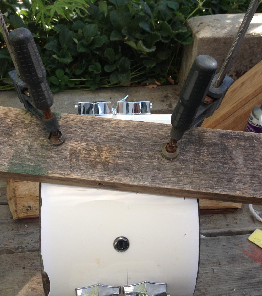 Overall the condition is pretty good but it needs a little work to make it really nice. The seams of the wrap are starting to lift. I'm not quite sure what to use to repair as I have not done any restorations before. Maybe squirt a little glue in the seam and find a way to lightly clamp? It is obviously missing the front hoop and tensioners for the bass. Interestingly, it is missing about half of the nuts and drum key bolts for the memriloc collars on all of the hardware. Someone must have needed some nuts for a home project and raided the set :)
