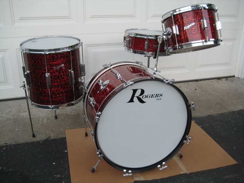 Cleveland Rogers Delta kit consisting of a 12" Tower ride tom, 20" Tower bass, with the rare 14" Tower floor tom and matching 14" Tower snare. I love these little Rogers center lug kits, as this is the second one I have rehabbed over the years.