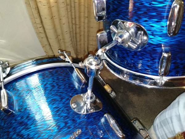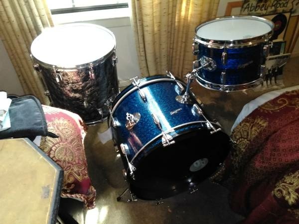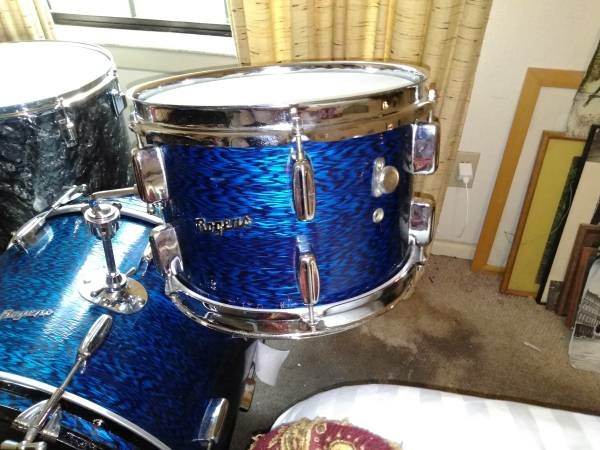 Cleveland era Rogers, 3ply Keller shells, blue onyx 8x12,14x20. Bread & butter lugs, no stress cracks on any. Only minor scuffs and scratches.