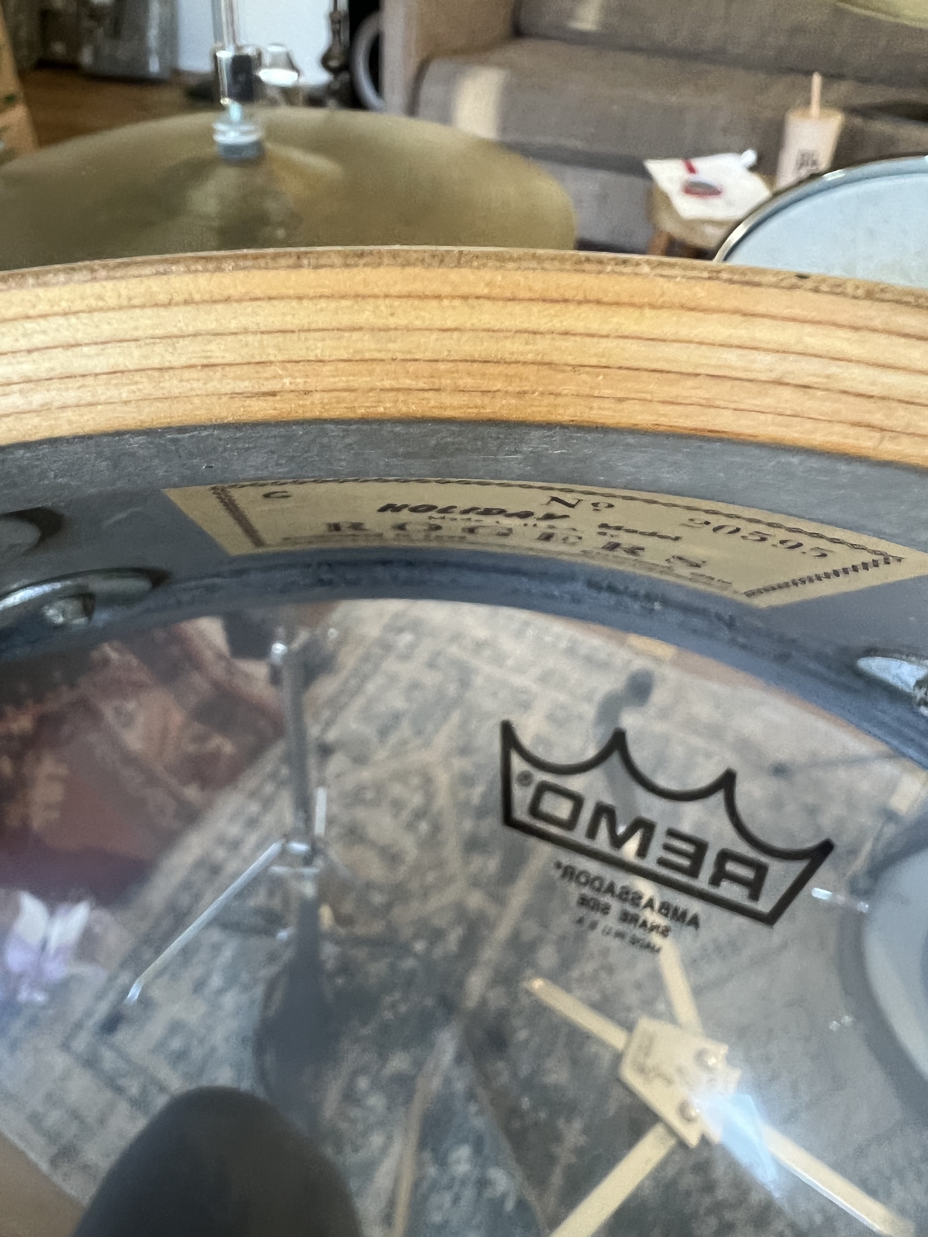 The bearing edges feel rounded, not like the sharper angled ones of the other Rogers drums I’ve owned, but it looks like it’s 5 ply, not 3 ply. I was under the impression that the switch to the 5 ply shells were also when they went with the more modern, sharper edged shells (though again, this may not be accurate.)