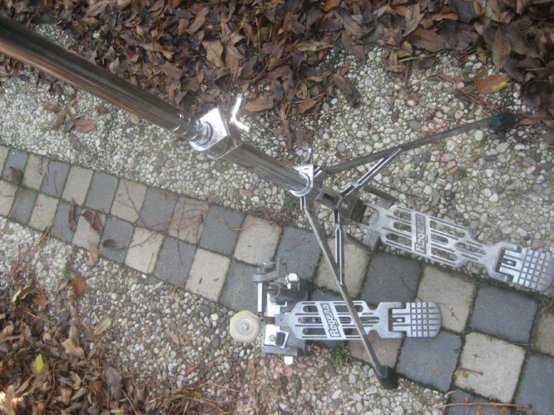 So the pedal and high hat are included? What about that single tom arm sitting on the chair behind the bass? Not a bad looking set. Finish looks nice, but there seems to be some rusting and pitting on the double tom post.