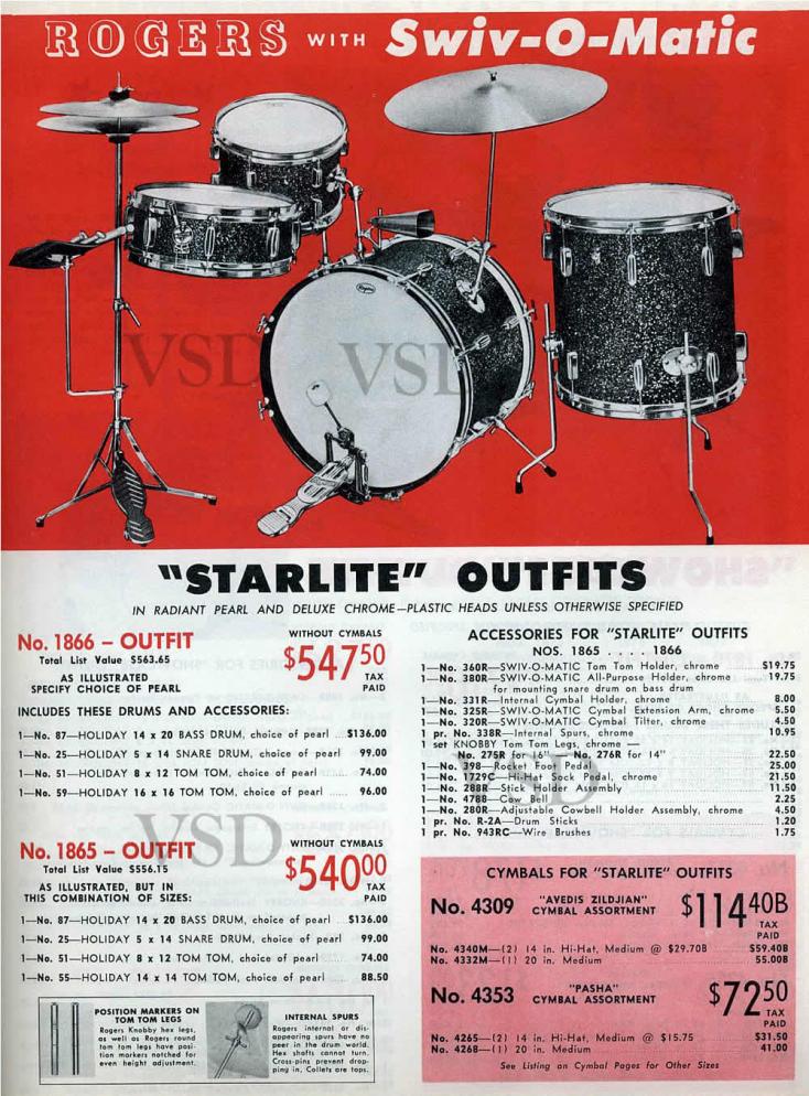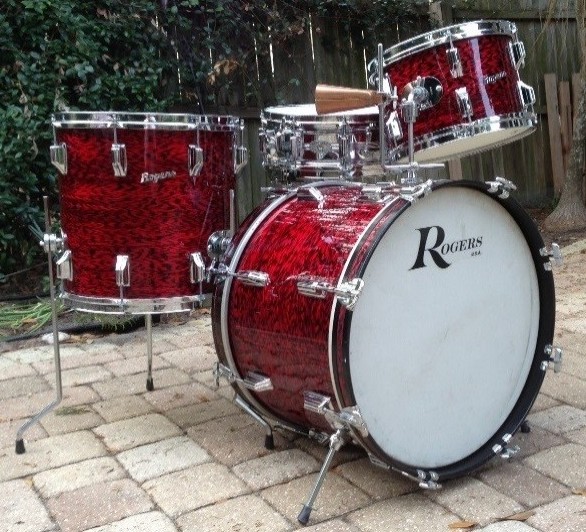 Nice looking Daytons for a good price. I'm a little curious about the placement of the tom mount collet on the bass drum. Any of you Rogers guys ever see a single tom mount placed dead center on top of the bass behind the script logo? Was there ever a factory catalog setup like this with the knobby cymbal mount? I've seen lots of crazy factory and custom collet placements, but never one like this.[Attachment: 115815]Just curious.Mike