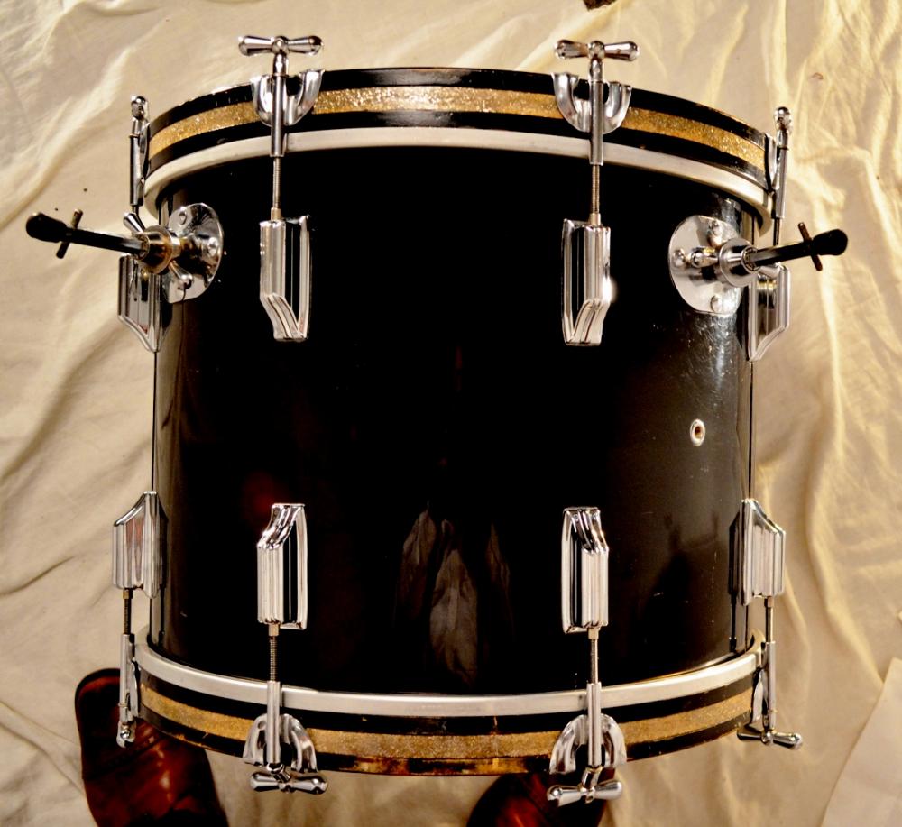 Here's a picture of my 14x18 and seam location. Seams are always centerline of the lug with the seam facing downward. The 14x14 is definitely not factory, unless they were really off that day. Given the bass also looks wrong and the fact noted above that NE White was not available until '73, I think it is definitely a re-wrap.