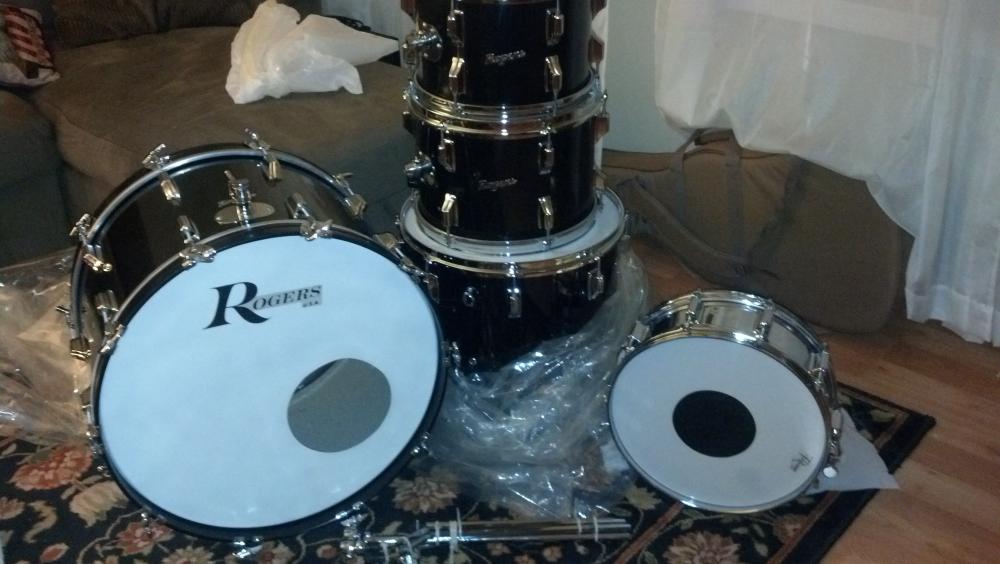 Rogers 9/72 Gloss Black kit. 12,13,16 toms, 22 kick and a SuperTen snare.