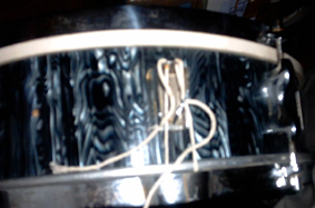 It's a good-looking shell, and the hoops are free of rust. Thing is, it doesn't have a throw off! The parts look old, so it's not is if a throw off has been removed - does anyone know anything? I've included a couple of pics, but my camera is no good for close-ups. it has slotted tesion bolts, and the grip type that hook onto the hoops not pass through them. Also, there appears to be a lug missing, as there's a larger gap where one should be and a hole. Is this worth restoring, or should I salvage the shell to make useable drum? I'd appreciate very much any help/suggestions etc.