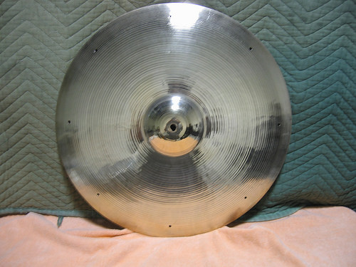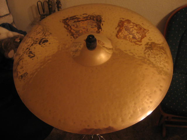 The traditionals don't look so bad because obviously they weren't real shiny to begin with. The New Beats and the K Custom look decent. The Vault crash is the worst of them. I know the protective coating is gone from the 2oo2, but it always shined up well when I cleaned it. I'm including some pics. The first is a 20" Zildjian Ride/Crash that I've owned for 35 years, it was the original ride on my very first kit. It was professionally polished with several others, about 20 years ago. Luckily, I didn't use this cymbal at the beach, and it wasn't affected. I'm posting it as a reference to the shine of my Zildjian cymbals. The next is the 2oo2 paiste China, and third is the Vault crash. These are all before pics, and I will snap some pics tomorrow of the "after" state. I added a fourth pic of the K Custom, in its "before" state.