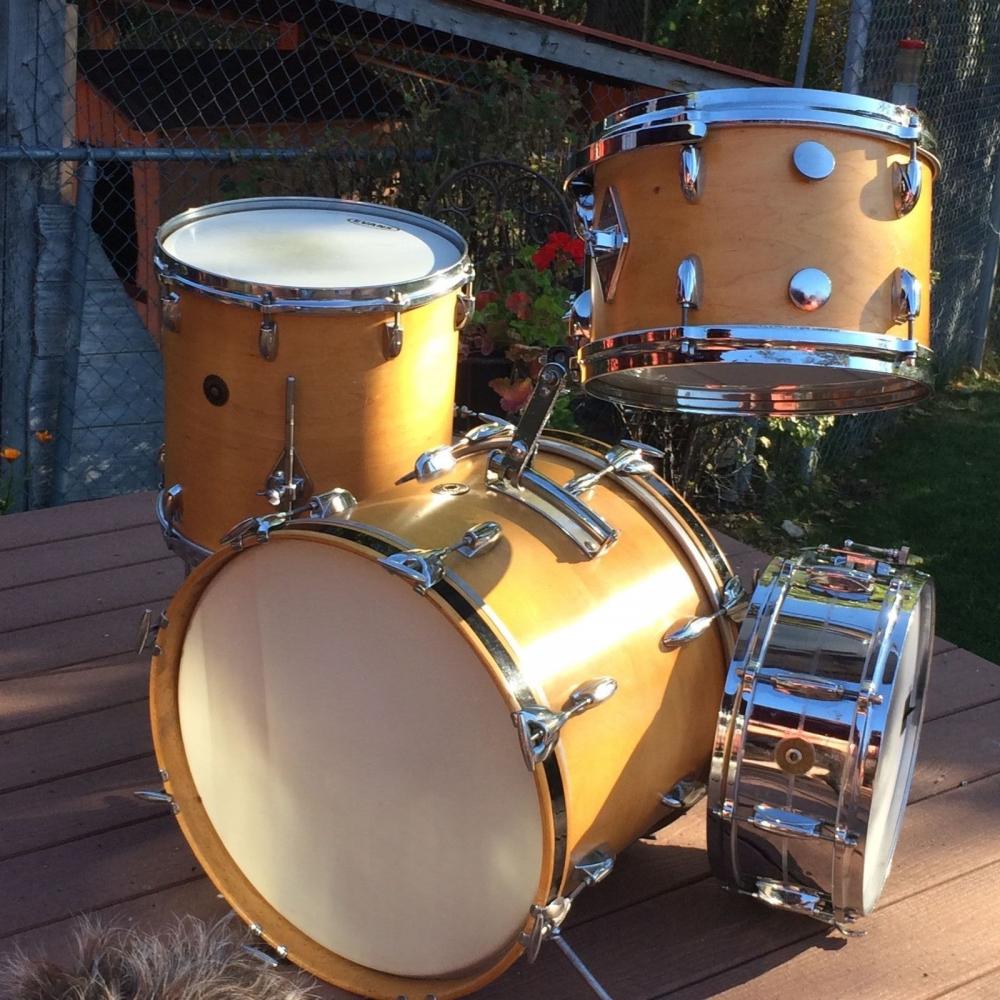 It used to be Midnight Blue Pearl, which eventually discolored and became Midnight Liver. I took the kit to the late LA drum maker Paul Bleifuss, who removed the finish and buffed the wood below. I find this natural color and wood grain to be very attractive. I'm glad you asked and I should have mentioned this on the description. Dang. I'll see if I can edit my entry.