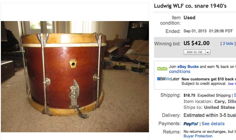 Jim I don't know what you paid for the drum, but the Slingerland zoomatic strainer sold will recoup a lot of your purchase price for the drum.