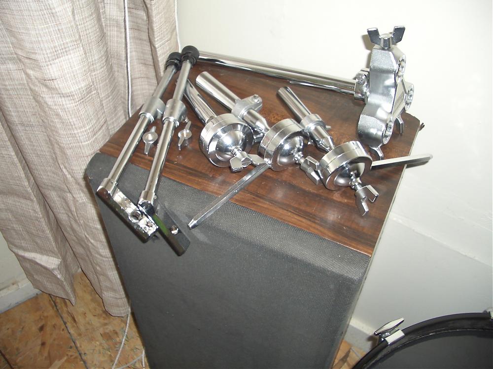 Includes triple tom mount with third tom holder and mini-boom plus matching single braced cymbal stand.