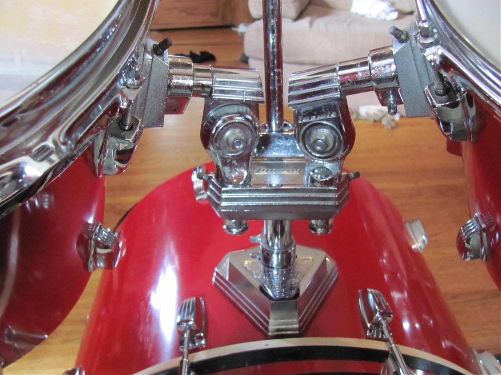 I am looking at buying a set from a guy that has conflicting appearances. (the set...not the guy) The badges are Blue and Olive. However, the bass drum hardware appears to be modular from the 80's period... or some other period, as I have never seen this type of hardware before.