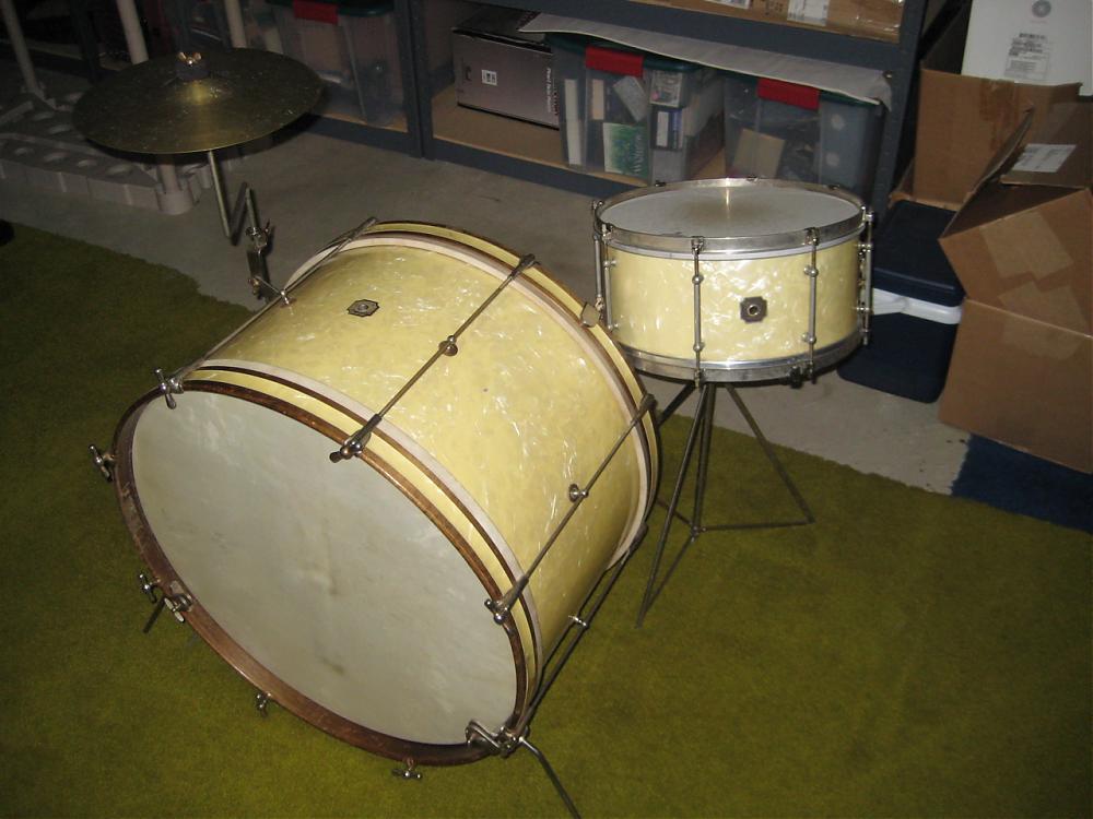 WOW! That's COOL! I have the very same snare drum. I think they only came in WMP finish. At least I've never seen a Sherwood drum in any other finish. Man, I LOVE my Sherwood snare. Even though it was likely considered a budget line back then, it's really well-made. It's basically a Ludwig drum with no built-in muffler and an extra-small throwoff. The brass single flange rims and clips were also likely considered budget back then. I have played mine with both modern drumheads and calfskin heads. I prefer the calfskins, but either way, thats a darn good snare drum. I'm sure the bass drum is nice, too. Yours is the first matched set I have ever seen. NICE!