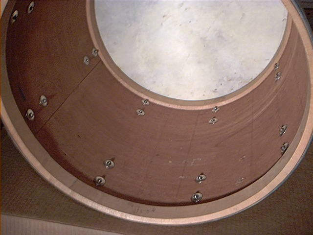 Oh, o.k., that makes sence. On the inside reinforceing hoops it has writing in pencil. The top one says "metal", the bottom one is written "wood". I assume this refers to the hoops, and on the interior wall in pencil is written "no cymbal holder". There are no holes for a tom mount but the bottom head does look like it has been hit with a pedal beater. Alright, thanks for the info.