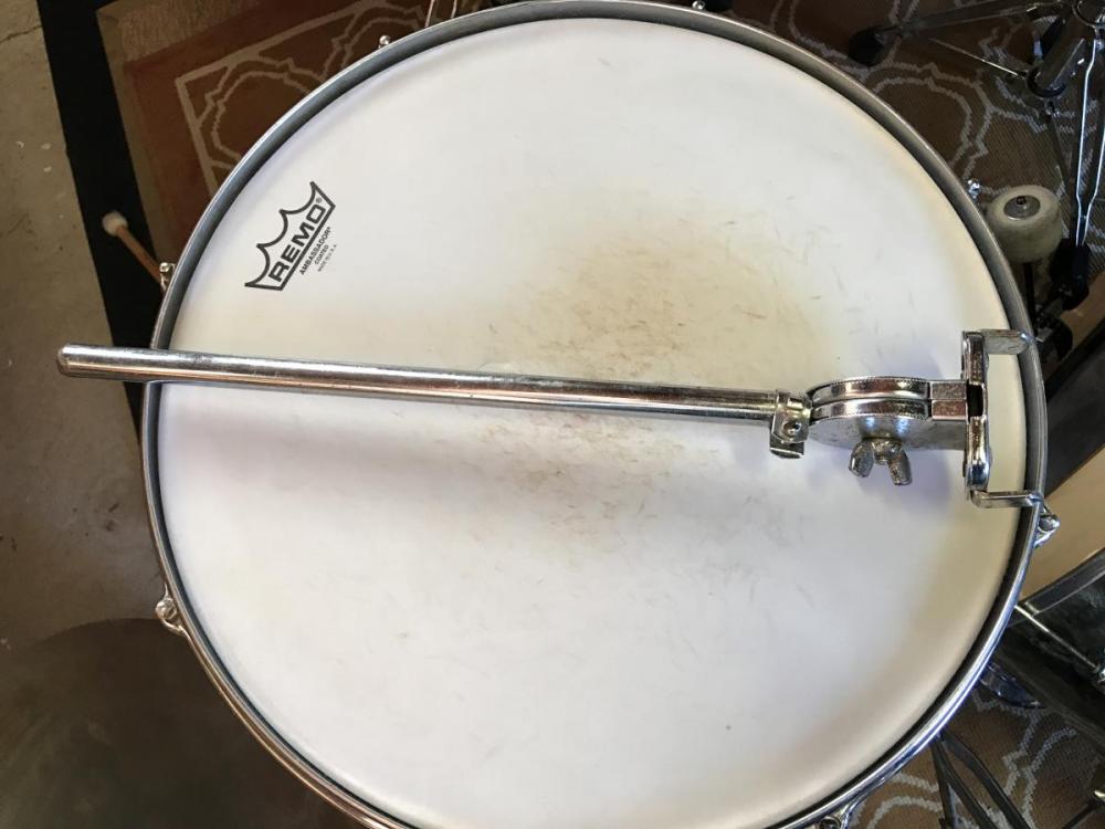 The mount is a pre-set-o-matic I guess? Mid 60s appropriate. Definitely Slingerland original part as it . . . says so. For sale is JUST the mount and tube (plus memory lock), not the bass drum bracket. Really nice condition ones are going for over 70 it looks like?