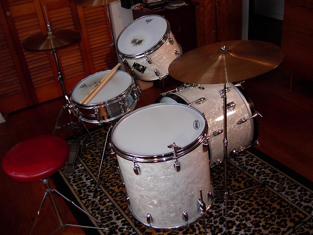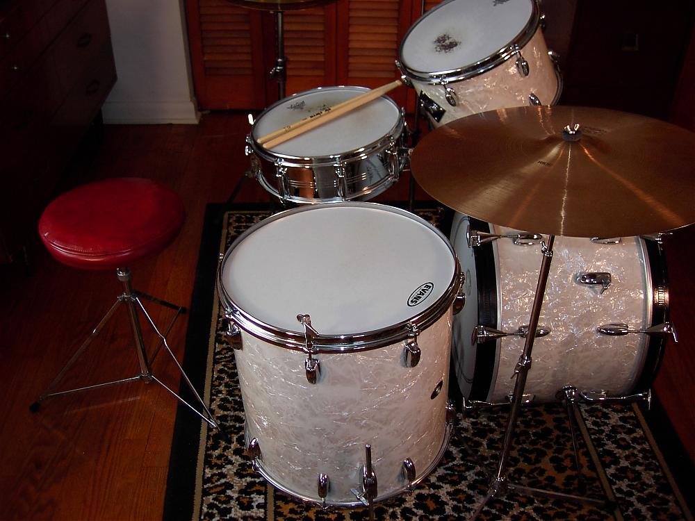 FOR SALE:: Slingerland Gene Krupa Deluxe Outfit kit # 1N,, 1966 model white marine pearl