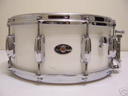 However, I just noticed an ad on Ebay for a "RARE" Vintage Slingerland White Vinyl snare, described as 1970's model 190 snare finished in heavy white naughahyde (vinyl) FACTORY FINISH and pretty rare!