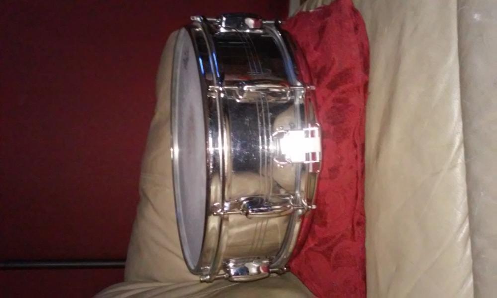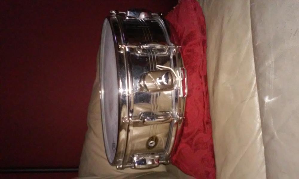 This is a 5x14 Slingerland black/gold badge cob snare. It's all original and in very good condition. The only issue is someone scratched small numbers above the badge, thanks.