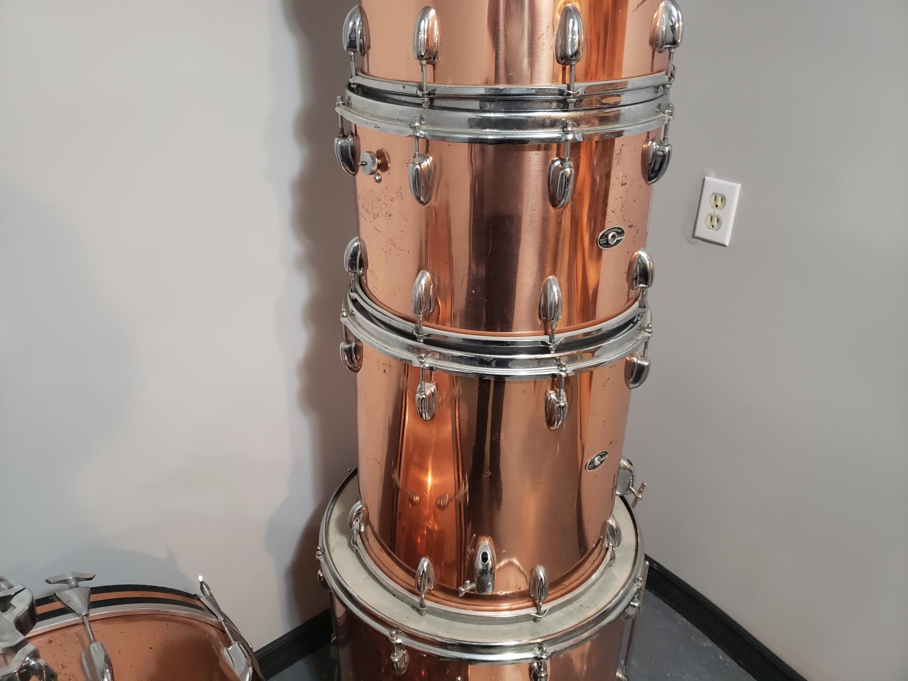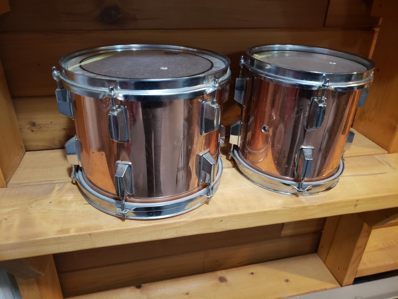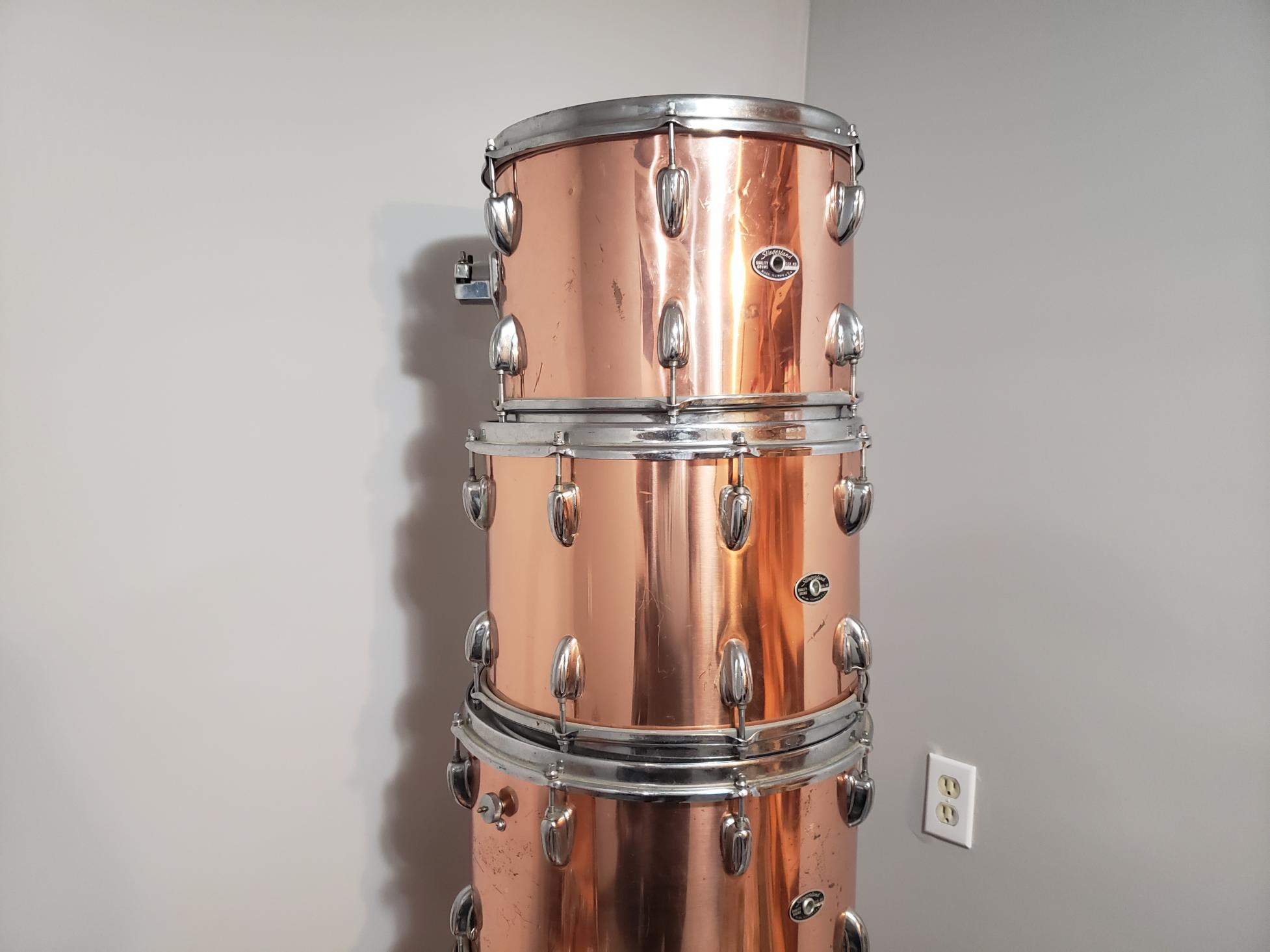 I found these on my local classifieds and got them home today. The rare Slingerland copper plated steel over 3 ply shells.
