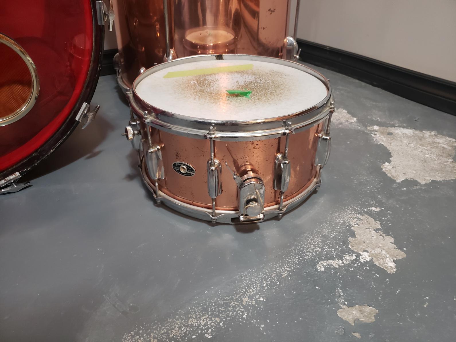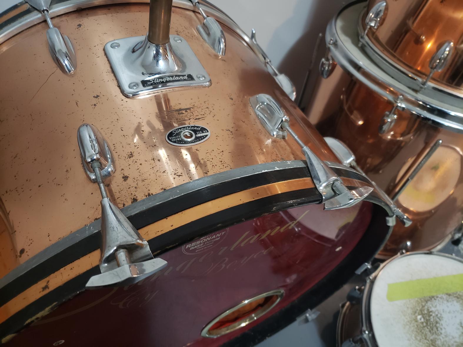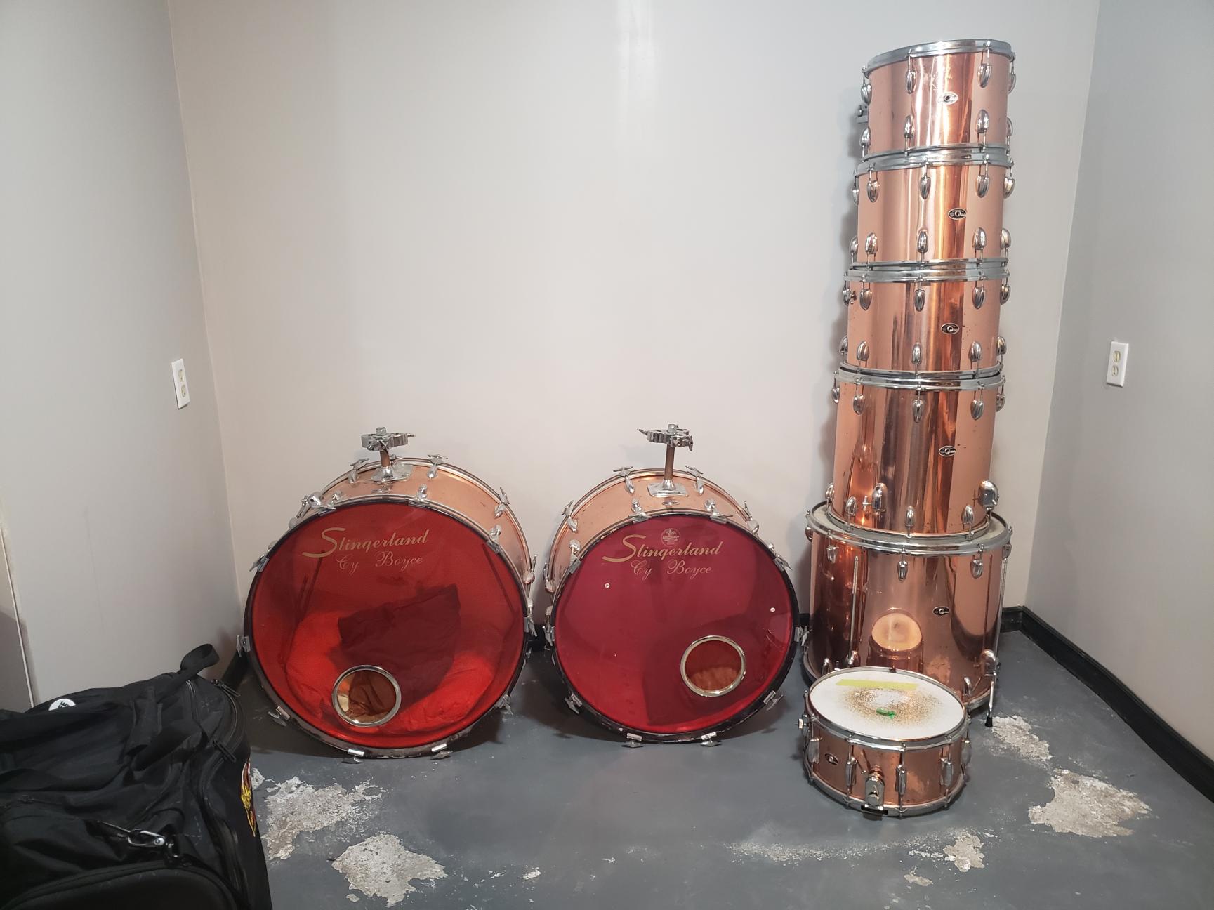 I found these on my local classifieds and got them home today. The rare Slingerland copper plated steel over 3 ply shells.