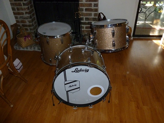 Does anyone have a Slingerland kit with the single set-o-matic tom arm they would consider trading for this 1969 Ludwig champagne sparkle kit? I'm not too concerned about finish, although I do prefer sparkle or pearl, thanks.