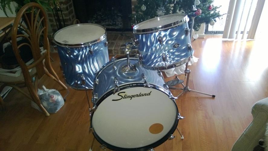 I have a cool Slingerland kit in a blue satin flame finish.