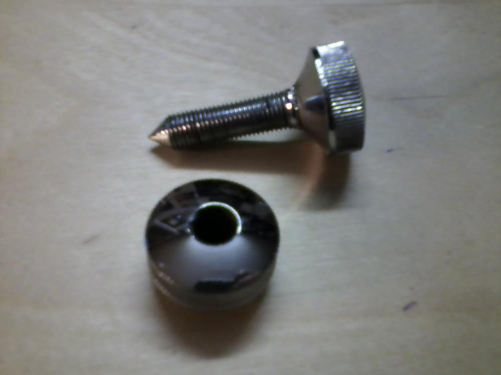It should have a screw down chrome floor spike and the lock nut...