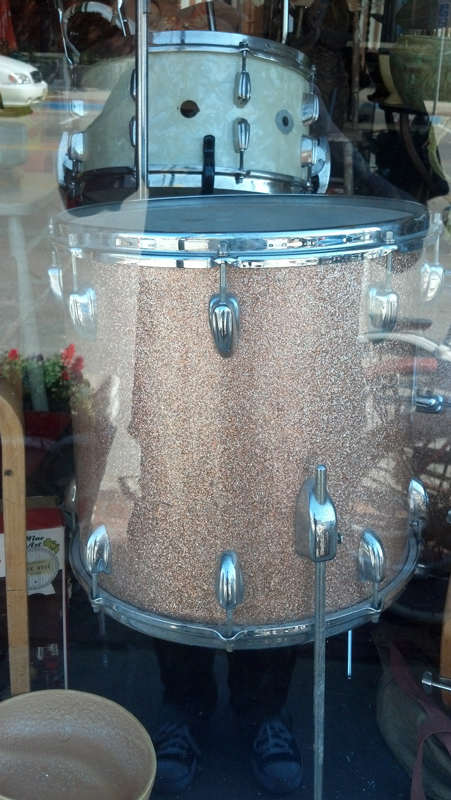 I found these two drums for sale. The guy wants $400 for both. It looks like a bass and floor tom from a slingerland jet kit. The guys thinks they are from '62 and says he saw a bass drum "just like this one" go for $350 by itself on ebay. It took me a couple of hours to even find out what the bass drum was, so I doubt he saw one just like it on ebay but whatever. I did see an 18'' slingerland bass drum from the 60's on ebay in the same wrap for $850 asking price, but it wasn't sold for that price.