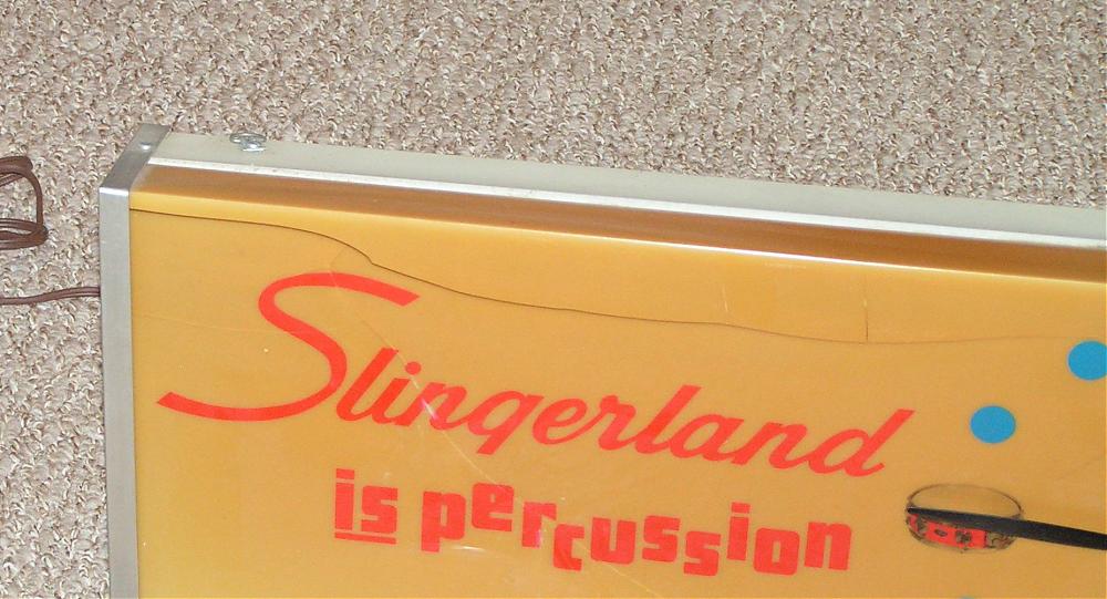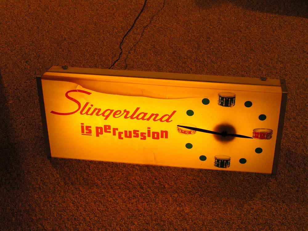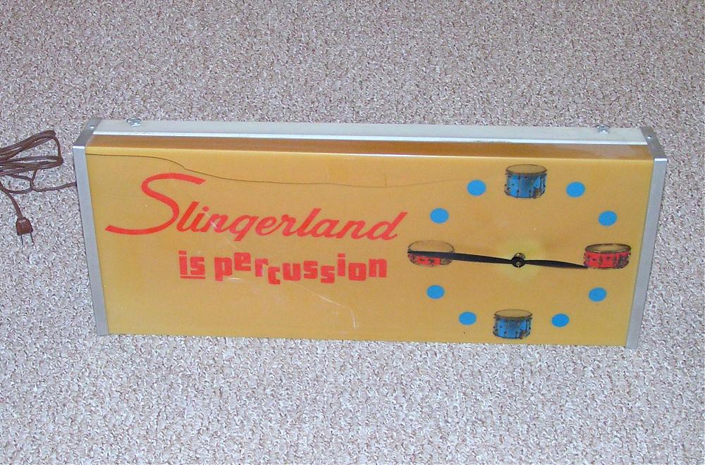 Really cool Slingerland dealer light sign display piece. Damaged. Had this for many years. Came to me cracked in shipping. Has sat on the same shelf in the same spot in my drum room for many years.