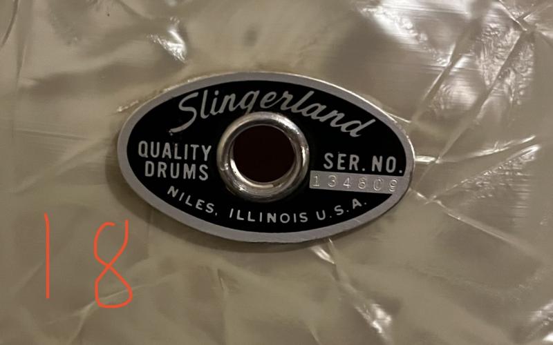 Mahogany interiors on kit drums after 1964 are 'an exception to the rule'. They do show up on occasion, mostly on the larger 18" and 20" floor toms. Could you provide a picture of the 18" badge and serial numbers for all the drums?