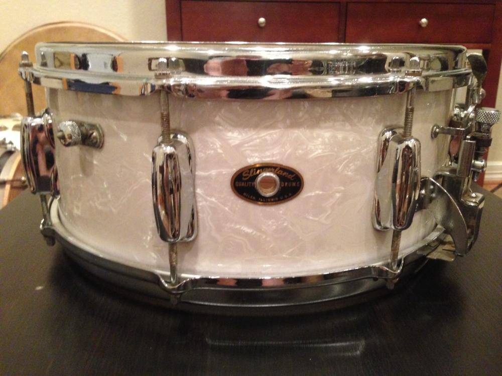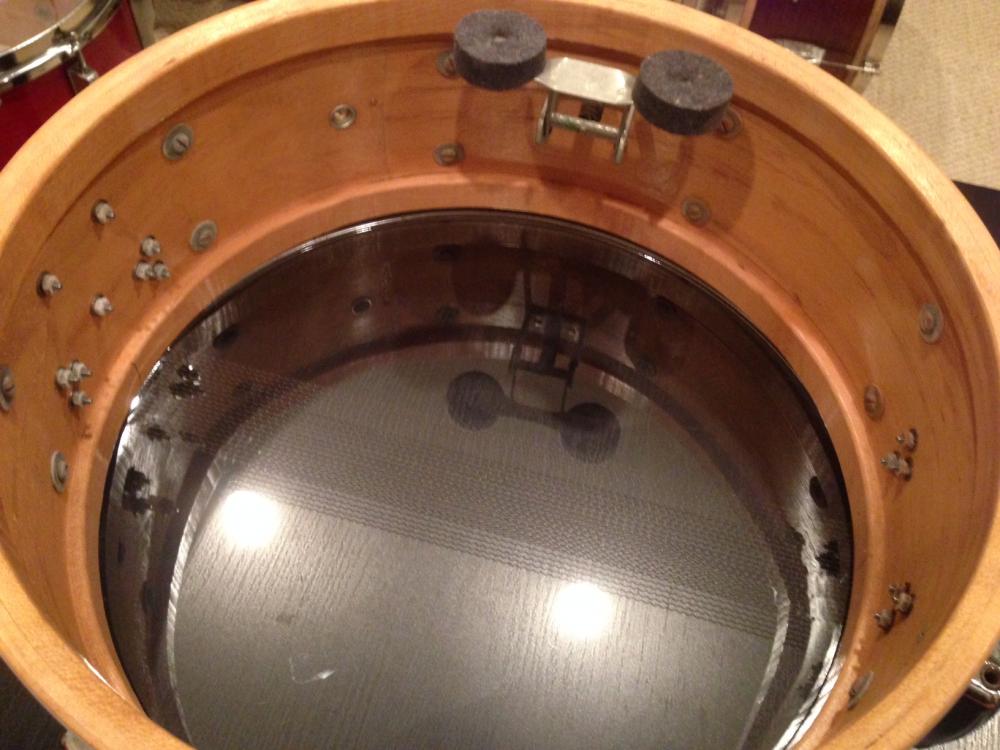 I purchased this recently from the original owner, along with the rest of his kit. He purchased the snare in the spring of 1962, so this could be a 1961 or 1962. There is no date stamp. The drum has a lacquer finish inside. It has not been modified, inside or out.