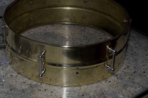 I've attached a pic of a Slingerland that I need help with. The drum is obviously brass, but the question I have is this; did Slingerland produce a brass finished drum? When I got the drum it was really beat up and painted black, but the black did not look like an original factory finish because there was quite a bit of overspray inside the drum so I stripped and polished the brass (well half so far). As I looked more and more at the drum I realized what a pain it would be to keep a brass finish looking sharp and the question of "real" finish started to creep in. Should this drum be black or ???