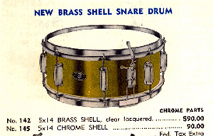 But on to the present day. The idiotic bass player I live with snapped the head on my snare. Being a vintage drum, with similarly vintage heads, this is a pretty big deal. This brought up and important issue: I have absolutely no idea what model my snare is. It's 5.5" X 14", has a '56-'59 badge, no tone control, 3-point strainer, and a stick-saver hoop. I know next to nothing about vintage drums myself, so I'd appreciate an ID. Don thinks it might be a custom, but I have my doubts as to his memory.