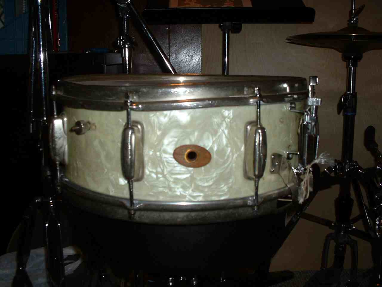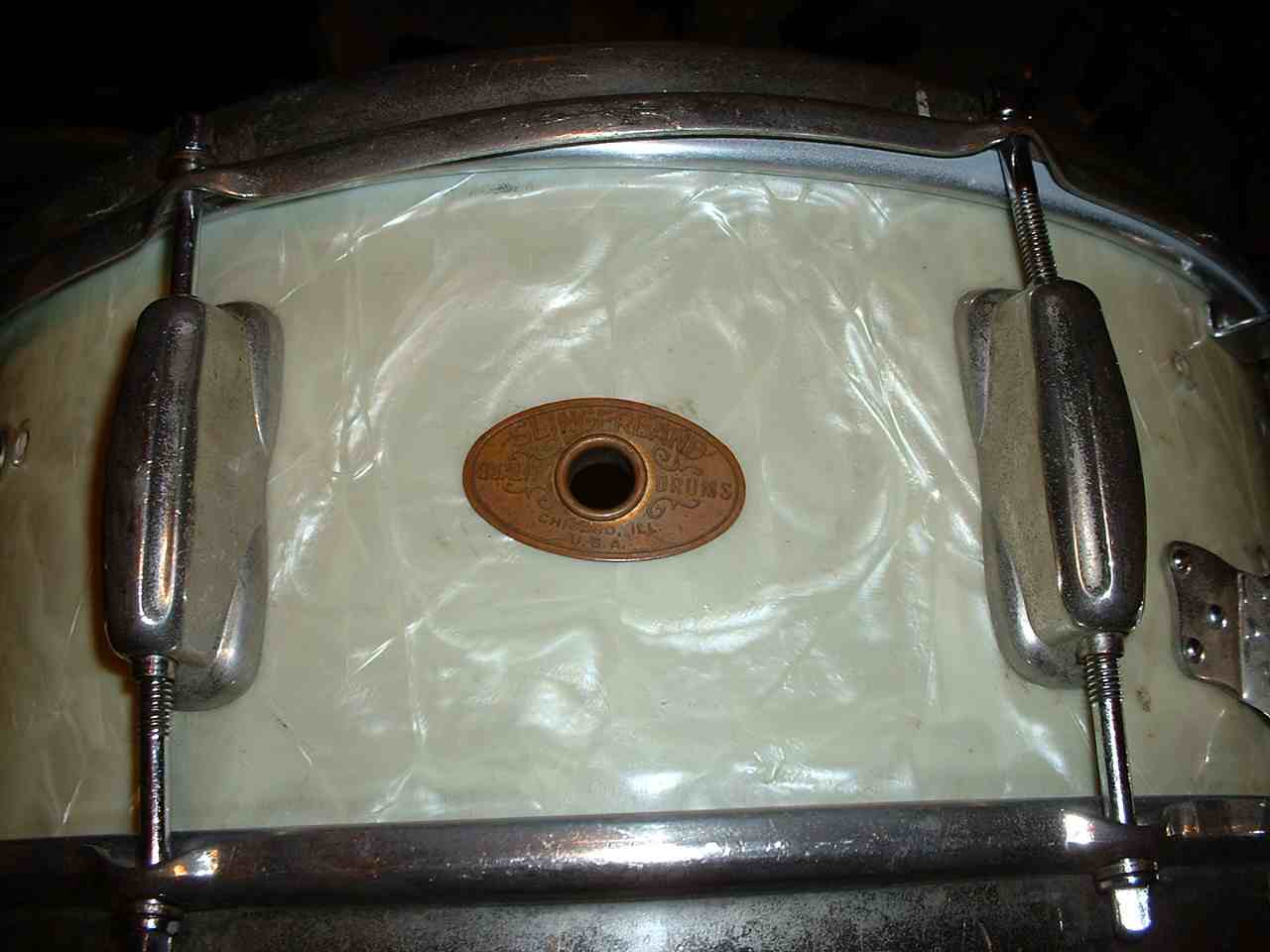 I'm trying to figure out more about this drum that I acquired recently. I've pretty much figured out that it is a slingerland from 1951 (according to the drum badge page on this site) but I'm not sure if it is a radio king or a different branch of slingerland. I'd like to find out so it will be easier to locate the right strainer.