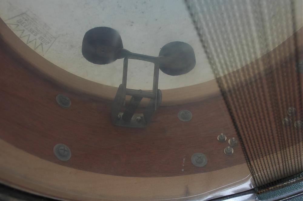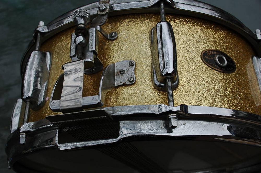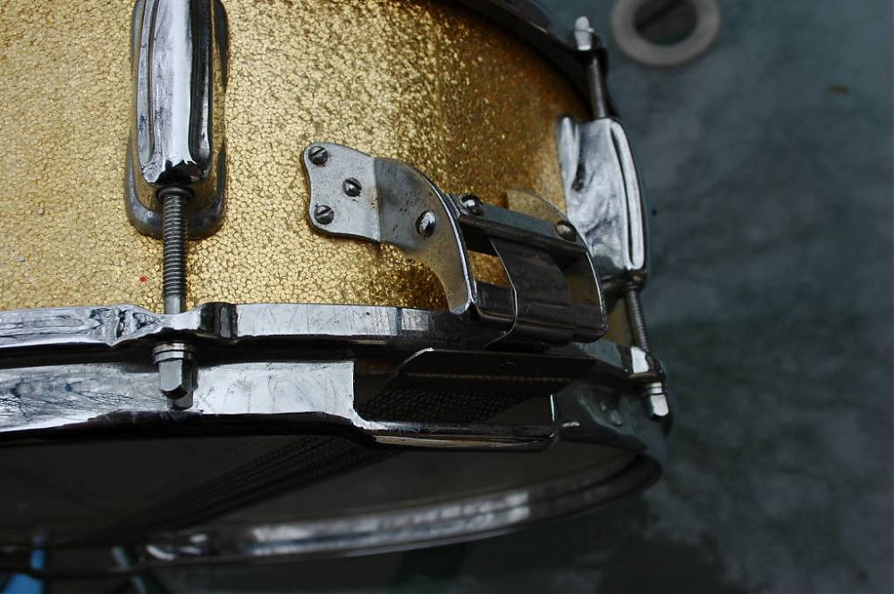 I've recently become a Slingerland junkie and I'm trying to I.D. my latest snare but having trouble. It is 14 by 5 1/2 (8 lug)in orange sparkling pearl. The shell is 3 ply with 1" maple rerings(mahogany/poplar/mahogany I think). The throw looks to be a 3 point with everything in tact The snare wires extend out the rims. It is stamped 28 Nov 1960 inside the shell along with the "P". I checked the catalogue from that era and it seems to look alot like the radio king but obviously it can't be due to the 3 ply shell. (did they ever make a 3 ply RK?) The badge is correct for 1960. There are no extra holes and a little wear on the snare bed. I don't think they had a Radio King in 1960 so any ideas on what this model is?