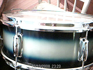 Hello to all, please help me with this snare. Inside has M and what looks like maybe the beginning of AUG, not much help. Six lugs, stick saver rims, throw off has three * * * holes to attach snares, grommet is dry and cracked, blackish on the sides, doesn't look like it was ever amber or red in color - almost is cork-like now. Serial number (for what it's worth) is 107810. Muffler knob control on this one is small (I have another late 60's snare with a bigger knob). I know it's not very rare but would love to narrow down ID info if possible.
