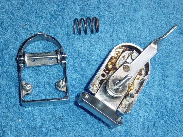 Although with this done, the strainer is now working as it was designed, I have also included a spring as per Davids mod. The spring gives a nice positive action to the lever operation..and the "E" clip stops the shaft from exiting the housing.