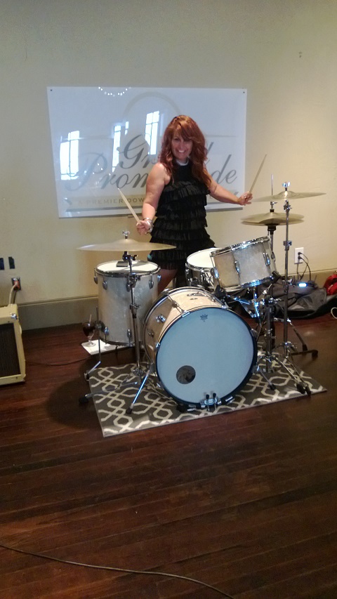 I took a picture of Leslie, our lead vocalist, behind my wmp Slingerland kit at a wedding last Saturday. It reminds of a drum ad from back in the day.