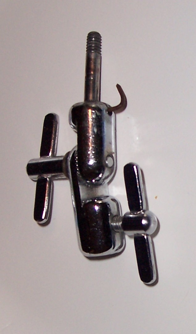 I was going through some of my "drum stuff" and ran across this Slingy tilter. There's some sort of metal piece that I can only describe as a "bent nail" coming out of the top section (please see pics). If I push it in (or through) the top portion of the tilter it still protrudes somewhat. Should the "excess" be bent around the top portion of the tilter? If not, where should it go?