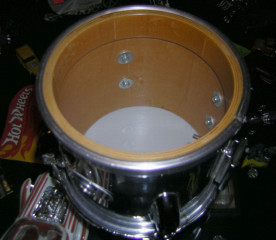 Found this picture of a 6" tom. The ones I looked at locally had much thicker shell, nice finished interiors and a thin lower reinforcement ring. This one looks like a thinner shell but is left raw on the interior and no reinforcement rings? To match with a 3ply maple era kit, what am I looking for?