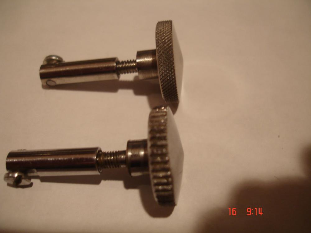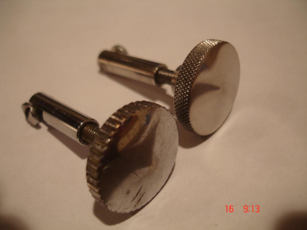 Okay, my machinist buddy has reproduced the missing parts that Kevin and I were needing. The tension knob ( I guess that what you call it) was an exact match except for the knurling on the edge, that's because I wanted it to match my tone control knob. I cant thank Kevin enough for sending me his parts to use as a model for my parts. I did have my buddy make Kevin a rod that goes between the strainer and butt for his drum , it was a perfect match to mine as well. Now both Kevin and I are faced with the task of finding snare wires to fit this mechanism. Any help would be appreciated, I still think there must be a way to cut down a new set of wires or someone must make custom snare wires somewhere in this country.