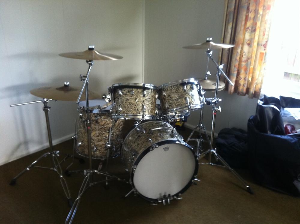 I think they look great. There is a lot to be said for the versatility of a five piece kit, and I like the fact that you don't have a million cymbals that (to me) can really clutter a kit up. The wrap looks fantastic!
