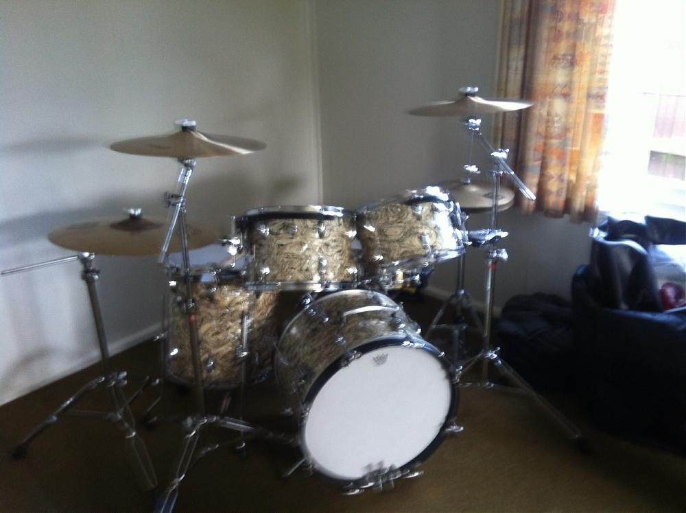 Your kit is a work of art! All of the effort and time you must have invested certainly paid off. Your drums are beautiful! I understand how you must feel because basically, I went through the same process getting my kit up and running (Stars in Turquoise Sparkle...Drum Gallery). Congratulations, sir!!! Amazing!
