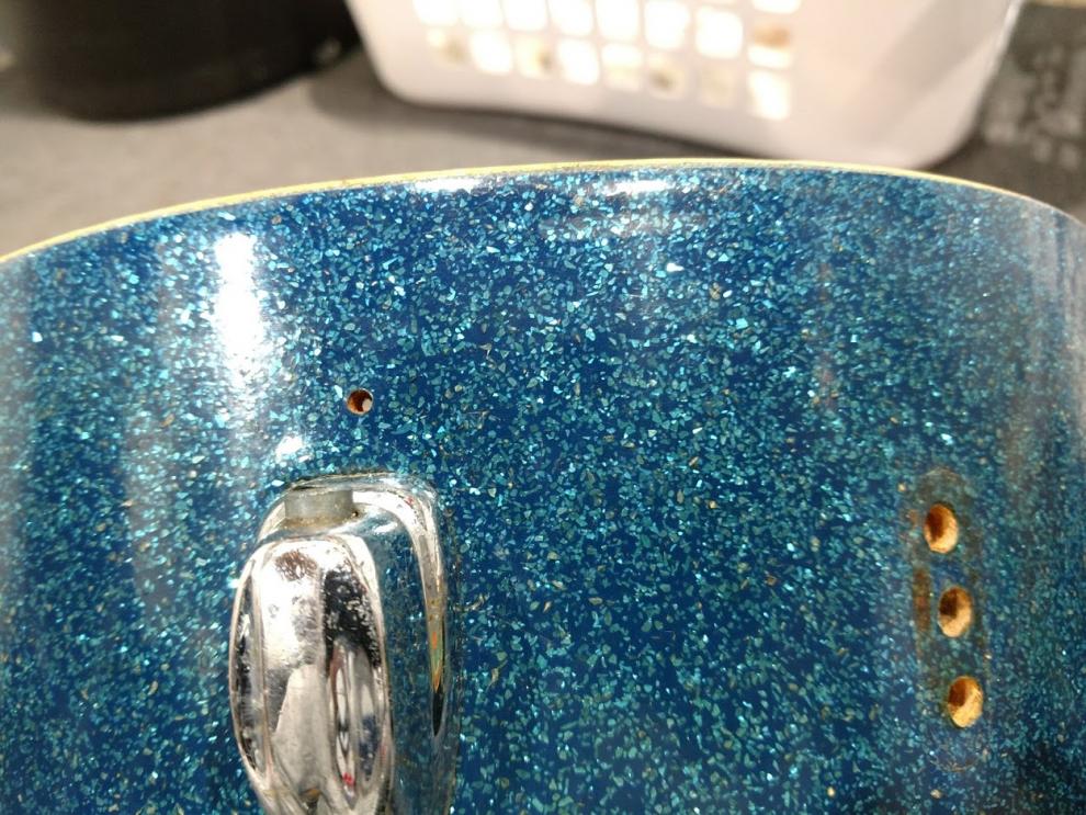 The holes are not present on the floor tom or bass drum; only on the two rack toms. It's a very clean hole and looks to be factory. Anyone ever see this before?