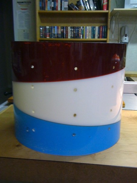 Not a Vistalite guy either. I have no idea what it's worth. From the bits I've read about Vistalites - that cracking is probably not unusual, especially in a marching/parade drum - I'd think a lot more stress on the shell from the jostling hardware. - - Also, I understand that they can crack from over-torquing the nuts 'n' bolts.