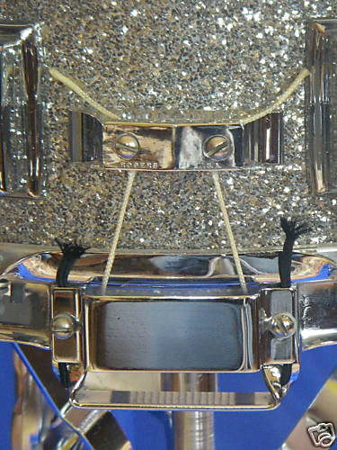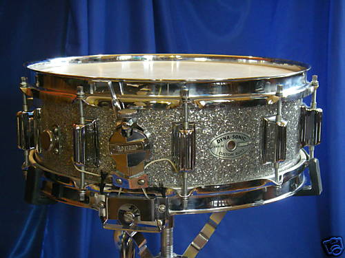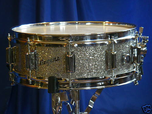 [COLOR=black][FONT=Times New Roman]1964 Rogers Wooden Dynasonic Snare Drum with ultra rare ORIGINAL ROGERS DYNASONIC HEADS (offered very briefly for production in 1964 ONLY). Transition Drum, āDā Stamp Clockface Strainer with Beavertail Lugs, very short period of production. High profile brass rims. Serial #3666-very early production drum. ABSOLUTE MINT AS NEW CONDITION. Sparkling Silver Pearl finish (from 1964 catalogue), sometimes called silver broken glass glitter. Finish is still bright and vibrant. [/FONT][/COLOR]