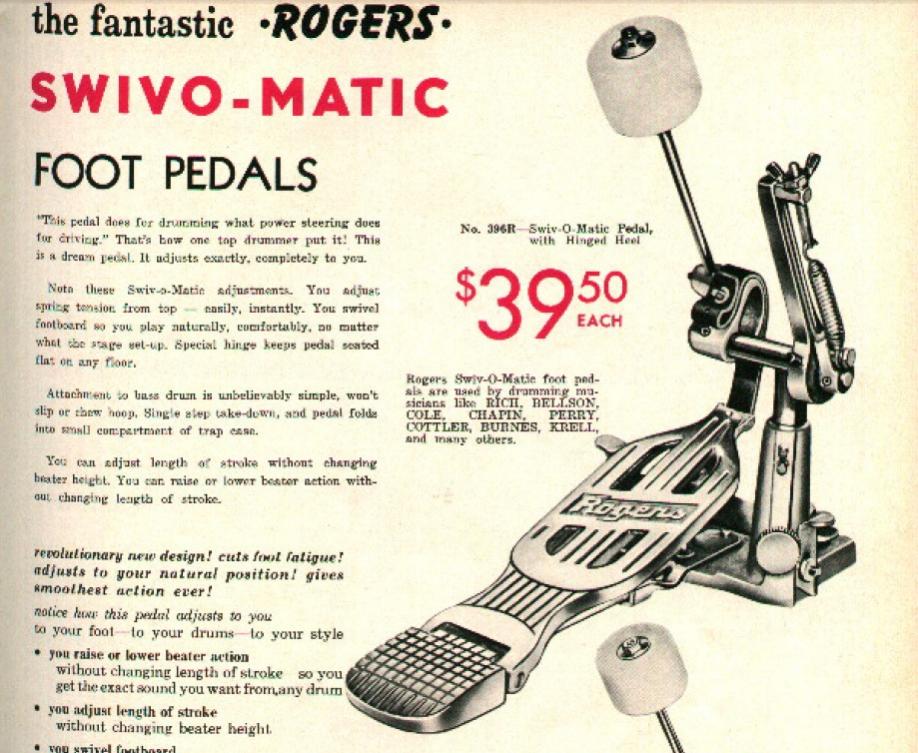 Nice advert photo Mike. That's a keeper. I note in the catalog cuts you can see on vintagedrumguide, that the pedals in the 67/68 catalog have the earlier heel, and by the 1970 catalog, it looks as if the heel has changed. So maybe it was an early Fullerton development - 69-ish???