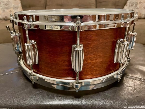 In the '79 catalog they started calling the finish Super Mahogany and was a gloss finish. Not sure if the shells still had rerings at this point or there was a transition during the year.